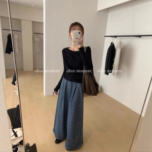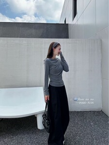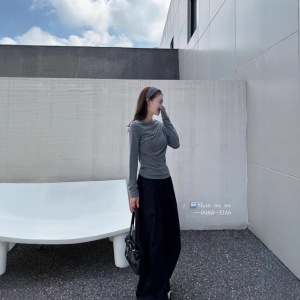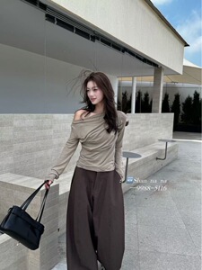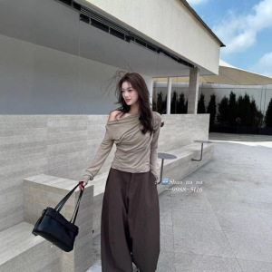秋上新 设计感一字领荡领韩系修身显瘦长袖T恤5116