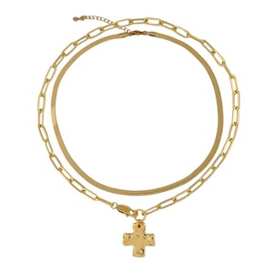 亚马逊跨境个性锤纹厚重十字架项链小众设计高级感蛇链条套装饰品