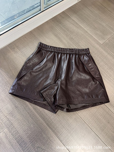 海宁真皮皮裤女绵羊皮油蜡短裤高腰松紧腰宽松休闲裤2025秋冬新款