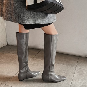灰色长筒靴女2025新款真皮法式方头内增高修饰腿型及膝靴子骑士靴