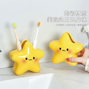 星星牙刷架可爱卡通洗漱台面普通牙刷收纳架高颜值陶瓷牙膏置物架
