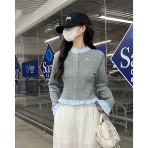 实拍 小香风假两件针织开衫女秋季穿搭法式设计感小众针织杉87588