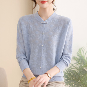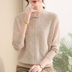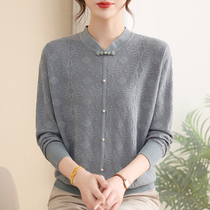 妈妈秋装新中式舒适时尚针织打底衫中老年女装毛衣洋气长袖T恤女