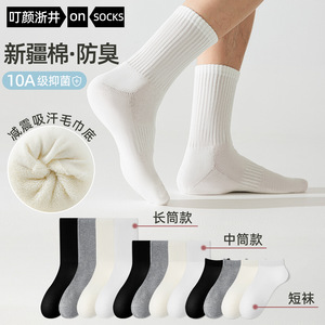 诸暨袜子男士秋冬加厚纯棉中筒袜抗菌防臭吸汗男袜白色长筒运动袜