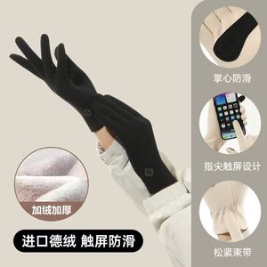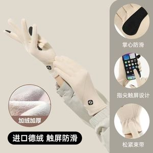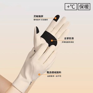 户外新款保暖手套德绒触屏外出骑车秋冬防滑骑行女士弹性手套批发