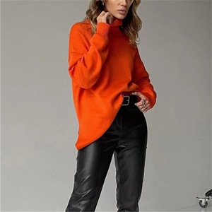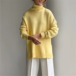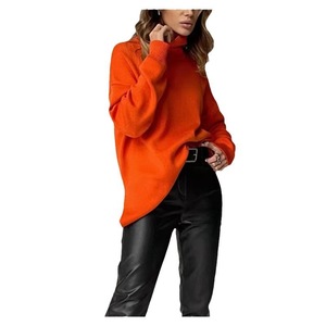 亚马逊爆款毛衣宽松针织衫跨境欧美高领毛衣女秋冬现货SY611#奶杏