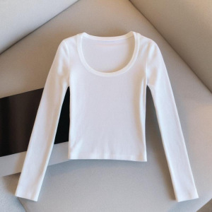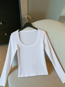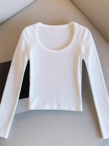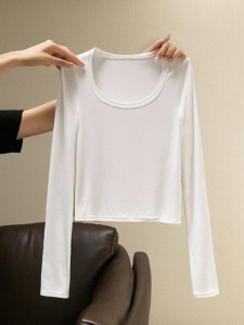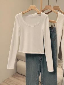 白色方领正肩长袖t恤女秋季2025新款修身紧身内搭打底衫短款上衣