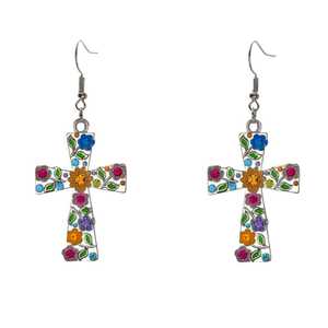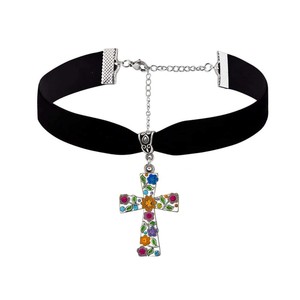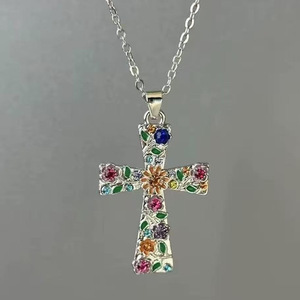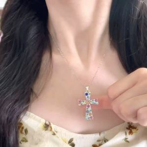 辣妹十字架项链彩色花朵十字架项链女轻奢时尚小梅花吊坠锁骨链