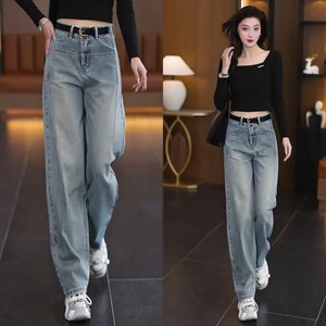 流行弯刀牛仔裤女2025秋季新款高腰显瘦前口袋百搭垂感窄版阔腿裤