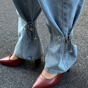欧美跨境新款配饰网红裤腰改小收腰扣链条别针潮流爱心胸针女脚饰