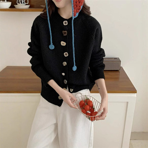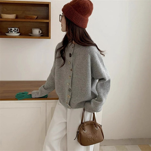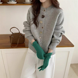 设计感小众纽扣毛衣外套女秋冬新款韩系慵懒温柔甜美针织开衫上衣