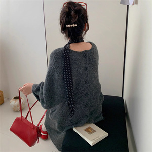 针织套装女秋冬新款正反两穿单排扣毛衣开衫半身长裙休闲两件套女