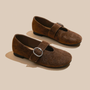 复古勃肯鞋女2025新款真皮平底单鞋一字扣带玛丽珍鞋豆豆鞋