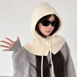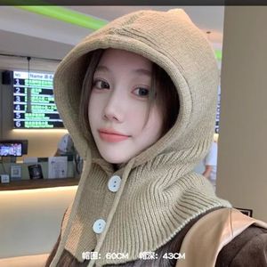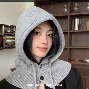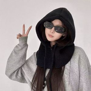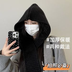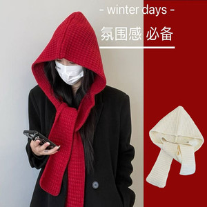 连帽披肩帽子围巾一体两件套纯色保暖秋冬季两用针织斗篷百搭时尚