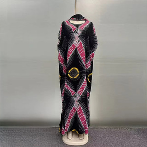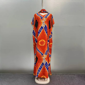 人棉印花穆斯林连衣裙2025烫钻大码宽身出口非洲风时尚女装长裙