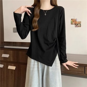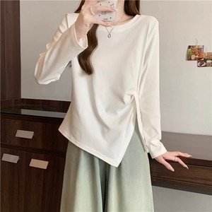 大码不规则开叉长袖t恤打底衫女胖MM遮肚子显瘦内搭洋气白色上衣