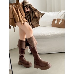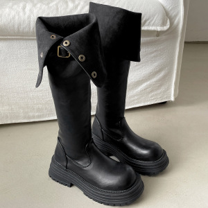黑色爆款小个子增高厚底过膝长筒靴女2025新款秋季百搭显瘦骑士靴