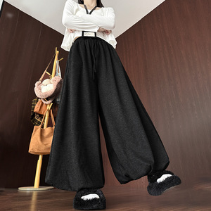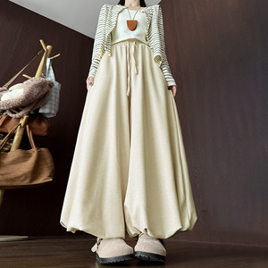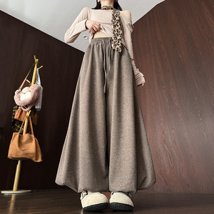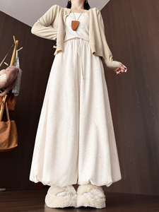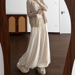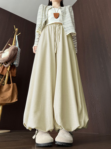 温柔风糯米花苞裤裙女秋季高腰针织休闲灯笼裤裙显瘦松弛感遛弯裤
