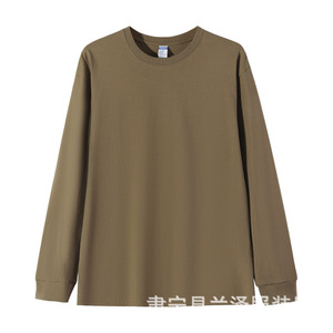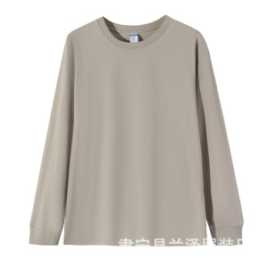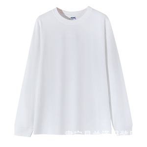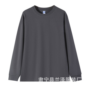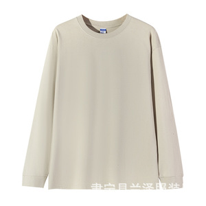 跨境260克重磅长绒棉纯色上口长袖T恤男女款纯棉落肩打底衫秋衣潮
