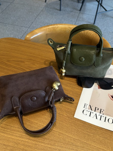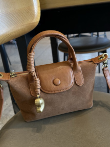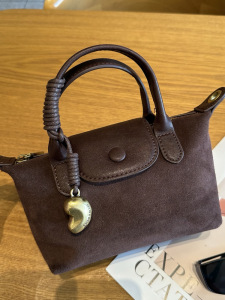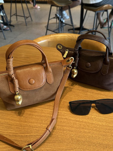 高级感麂皮绒手提饺子包包女2025秋冬新款磨砂小托特单肩斜跨小包