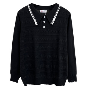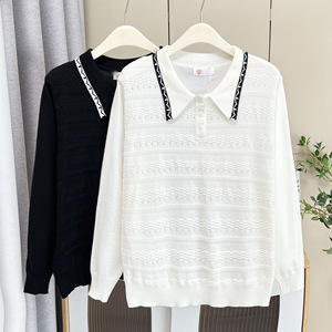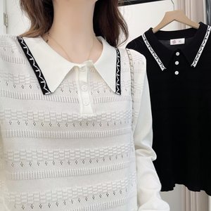 200斤胖妹妹早秋新款气质镂空POLO领针织上衣大码洋气上衣女7997