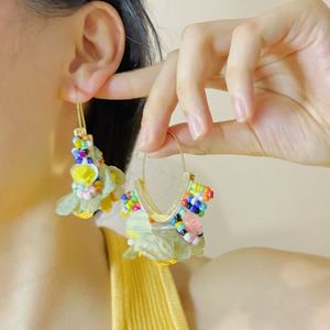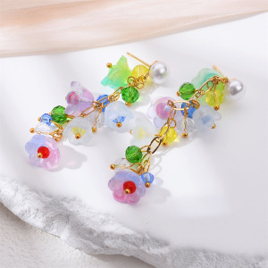 波西米亚夸张流苏耳环女民族风长款耳钉高级耳饰甜美温柔银针花朵