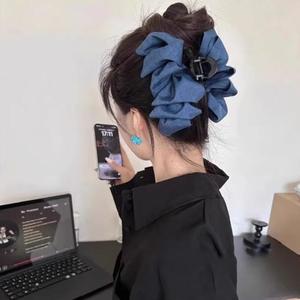 2025新款韩百搭高档蓬松云朵泡泡抓夹女大号蝴蝶结盘发鲨鱼夹发夹