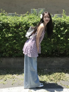 美式复古浅蓝色高腰阔腿牛仔裤女夏季薄款小个子宽松显瘦直筒长裤