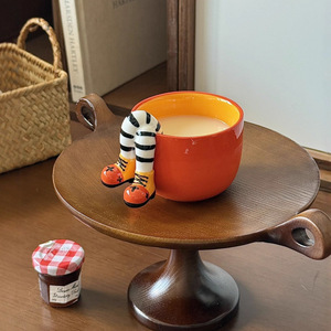 创意手绘陶瓷杯马克杯巧克力牛奶杯咖啡杯高颜值创意翘腿家用水杯
