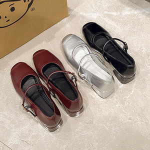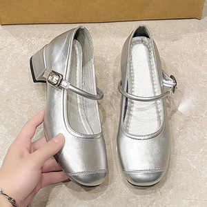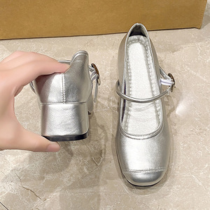 葡萄妈同款内增高~浅口银色2025年女新款平底软底玛丽珍单