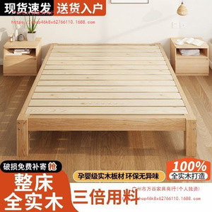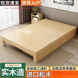 实木床1.5米家用双人床1.8x2米租房单人松木床1.2m现代简约木板床