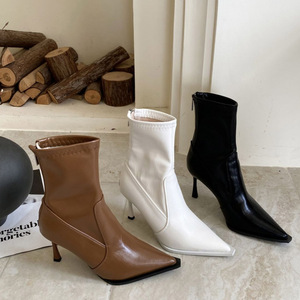 2025年秋季新款时尚百搭弹力靴细跟尖头高跟短靴女中筒瘦瘦靴裸靴
