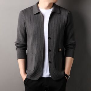 2025年秋季新款针织开衫男翻领长袖针织衫男青中年男休闲开衫男