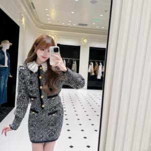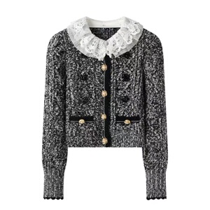 现货2025秋季新款气质小香拉夫领花式纱短款针织开衫LF25Q41ZC055