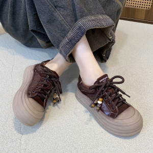 复古休闲真皮女鞋包头平底单鞋2025秋季新款串珠圆头低帮休闲鞋女