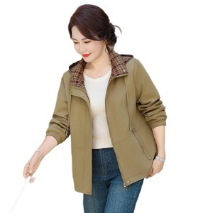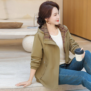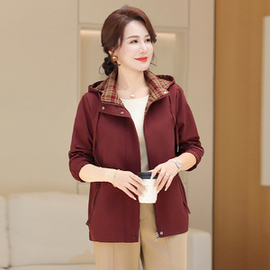 中年妈妈装洋气外套2025春秋新款中老年女装连帽夹克婆婆休闲上衣