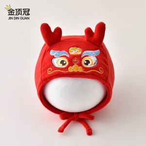 婴儿帽子秋冬款红色虎头帽满月帽男女宝宝周岁宴帽子喜庆护耳帽