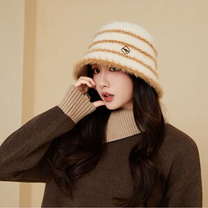 新款针织毛线渔夫帽女2025秋冬季日系甜美水桶帽大头围显脸小盆帽