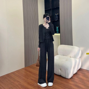 运动休闲时尚套装春秋冬季2025宽松阔腿裤三件套背心长袖时尚开衫