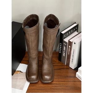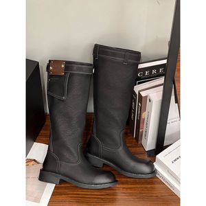 壹米恩2025秋冬季新款小个子增高显腿直圆头粗跟拼接显腿长时装靴