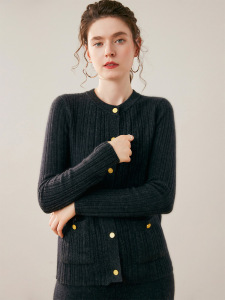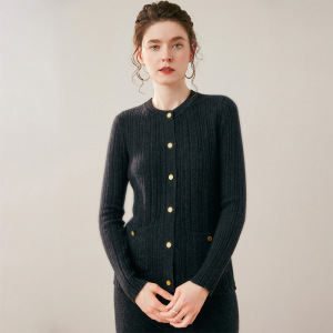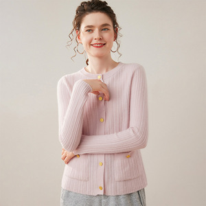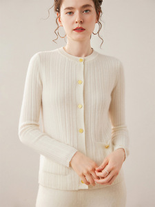 新款羊绒秋冬新款不规则坑条高级感圆领针织衫修身保暖毛衣上衣女