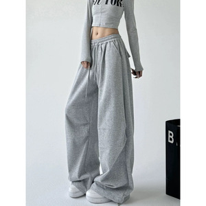 美式灰色运动裤女春秋新款高腰直筒宽松休闲卫裤工装阔腿裤子女潮