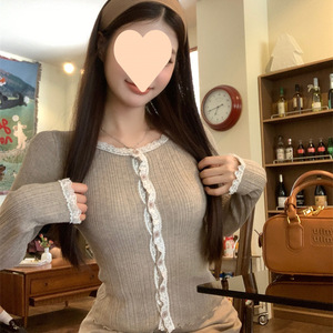 法式气质蕾丝花边针织开衫早秋季新款修身木耳边短款薄款外穿上衣