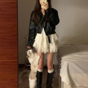 美式复古黑色短款皮衣外套女春秋季感小个子机车服pu夹克上衣