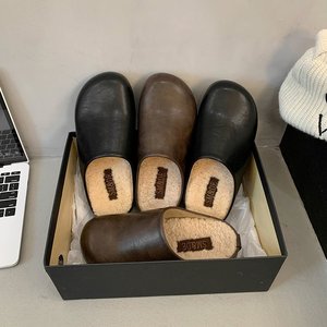网红厚底皮面包头半拖毛毛鞋女秋冬外穿2025新款百搭加绒懒人棉拖