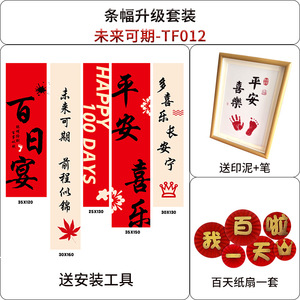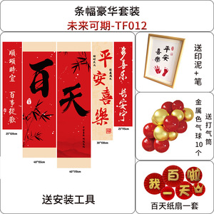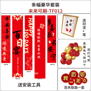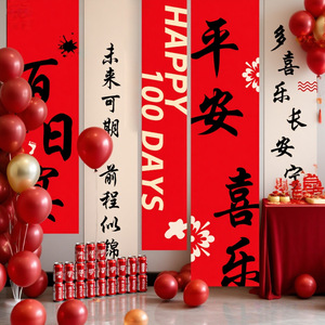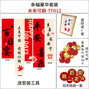 宝宝百天条幅挂布百日宴贴纸场地布置仪式拍照背景布道具气球套装