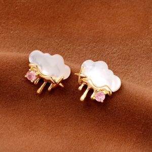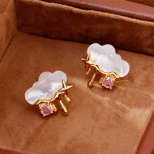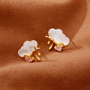 2025抖音爆款耳饰时尚甜美气质圆脸耳钉小众设计祥云白色贝壳耳环