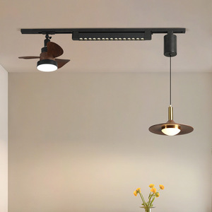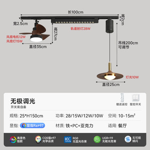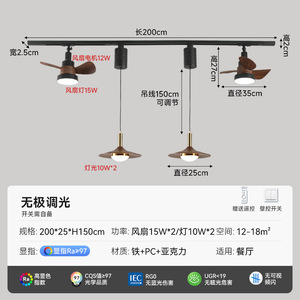 中古风餐厅吊灯可升降可移位饭厅灯高级感茶室胡桃木色飞碟风扇灯