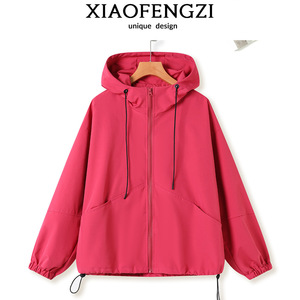 2025开春超火时尚流行玫粉色外套女小个子工装外套上衣连帽冲锋衣