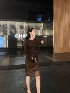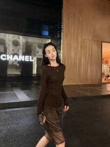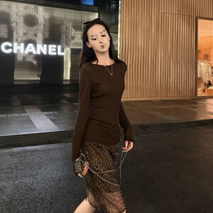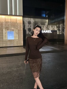 2025早秋新款气质豹纹时尚百搭半身裙女修身显瘦色长袖恤套装